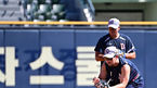 [OSEN=지형준 기자] 8일 오후 서울 잠실야구장에서 ‘2023 신한은행 SOL KBO리그’ 두산 베어스와 삼성 라이온즈의 경기가 열렸다.경기에 앞서 두산 이승엽 감독이 조수행에게 토스배팅볼을 던져주고 있다. 2023.08.08 /jpnews@osen.co.kr