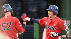 [OSEN=부산, 이석우 기자] 11일 부산 사직구장에서 2023 신한은행 SOL KBO리그 롯데 자이언츠와 KIA 타이거즈의 경기가 열렸다. 롯데 자이언츠 정훈이 2회말 1사 좌월 솔로 홈런을 치고 하이파이브를 하고 있다. 2023.08.11 / foto0307@osen.co.kr