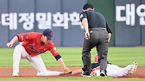 [OSEN=부산, 이석우 기자] 11일 부산 사직구장에서 2023 신한은행 SOL KBO리그 롯데 자이언츠와 KIA 타이거즈의 경기가 열렸다. KIA 타이거즈 박찬호가 1회초 1사 1루 나성범 타석때 2루 도루 아웃되고 있다. 2023.08.11 / foto0307@osen.co.kr