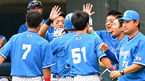 [OSEN=목동, 김성락 기자] 12일 오전 서울 목동야구장에서 제57회 대통령배 전국고교야구대회 4강전 군산상일고와 경기고의 경기가 열렸다. 5회초 1사 경기고 염승준이 추격의 솔로 홈런을 날린 뒤 홈에서 동료 선수들과 기쁨을 나