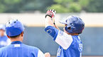 [OSEN=목동, 박준형 기자] 14일 오후 서울 목동야구장에서 제57회 대통령배 전국고교야구대회 결승전 군상상일고와 인천고의 경기가 진행됐다.6회말 1사 1,2루 군산상일고 민국이 재역전 1타점 적시타를 날리고 세리머니를 하고 있