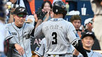 [OSEN=창원, 이석우 기자] 15일 창원 NC파크에서 2023 신한은행 SOL KBO리그 NC 다이노스와 한화 이글스의 경기가 열렸다. NC 다이노스 박민우가 6회말 우전 3루타를 치고 공 빠지는 사이 홈까지 쇄도 득점에 성공하고 동료들의 축하를