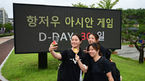 [OSEN=진천, 김성락 기자] 24일 오전 충북 진천선수촌에서 2022 항저우아시아경기대회 D-30 미디어데이 행사가 열렸다. 여자수구 김예진, 설지선, 문다윤이 D-30 전광판 앞에서 기념촬영을 하고 있다. 2023.08.24 /ksl0919@osen.co.kr
