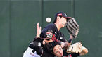 [OSEN=부산, 이석우 기자] 26일 부산 사직구장에서 2023 신한은행 SOL KBO리그 롯데 자이언츠와 KT 위즈의 경기가 열렸다. KT 위즈 이호연이 1회말 1사 1,2루 롯데 자이언츠 전준우의 타구를 잡으려다 김민혁과 충돌해 쓰러지고 있다. 2023
