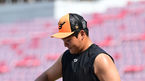 [OSEN=광주, 김성락 기자] 27일 오후 광주 KIA챔피언스필드에서 2023 신한은행 SOL KBO리그 KIA 타이거즈와 한화 이글스의 경기가 진행됐다.경기 시작에 앞서 한화 김태연이 미소짓고 있다. 2023.08.27 / ksl0919@osen.co.kr