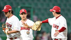[OSEN=인천, 이대선 기자] 12일 오후 인천 SSG랜더필드에서 2023 신한은행 SOL KBO리그 SSG 랜더스와 키움 히어로즈의 경기가 열렸다.6회말 수비를 마친 키움 안우진이 더그아웃에서 이형종과 하이파이브를 하고 있다. 2023.08.31 /sunday@osen