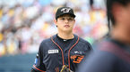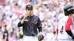 [OSEN=잠실, 조은정 기자]3일 오후 서울 잠실야구장에서 ‘2023 신한은행 SOL KBO리그’ LG 트윈스와 한화 이글스의 경기가 열렸다.4회말 이닝을 마친 한화 선발 문동주가 경기 중 자신의 견제구에 맞은 LG 신민재를 향해 인사를 하고