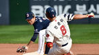 [OSEN=부산, 이석우 기자] 3일 부산 사직구장에서 2023 신한은행 SOL KBO리그 롯데 자이언츠와 두산 베어스의 경기가 열렸다. 두산 베어스 김재환이 6회말 2사 좌전 안타를 친 롯데 자이언츠 전준우를 2루에서 잡고 동료들의 축하를 받
