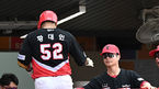 [OSEN=잠실, 조은정 기자]3일 오후 서울 잠실야구장에서 ‘2023 신한은행 SOL KBO리그’ LG 트윈스와 한화 이글스의 경기가 열렸다.1회말 2사 한화 선발 문동주가 만루를 허용하자 코칭스태프와 포수가 마운드에 올라 대화를 나누고