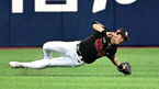 [OSEN=고척 지형준 기자] 3일 오후 서울 구로구 고척스카이돔에서 ‘2023 신한은행 SOL KBO리그’ 키움 히어로즈와 KT 위즈의 경기가 열렸다.3회말 무사 2루에서 KT 김민혁이 키움 김수환의 안타성 타구를 몸 날려 잡아내고 있다. 2023.0