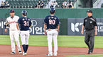 [OSEN=부산, 이석우 기자] 4일 부산 사직구장에서 2023 신한은행 SOL KBO리그 롯데 자이언츠와 두산 베어스의 경기가 열렸다. 두산 베어스 이승엽 감독이 1회초 비디오 판독 끝에 폴대 맞고 홈런 인정 받은 정수빈에게 박수를 보내고