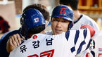 [OSEN=울산, 이석우 기자] 5일 울산 문수야구장에서 2023 신한은행 SOL KBO리그 롯데 자이언츠와 삼성 라이온즈의 경기가 열렸다. 롯데 자이언츠 유강남이 1회말 2사 1,3루 좌중월 3점 홈런을 치고 전준우와 포옹을 하고 있다. 2023.09.05
