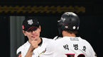 [OSEN=수원, 이대선 기자] 5일 오후 수원 KT위즈파크에서 2023 신한은행 SOL KBO리그 KT 위즈와 LG 트윈스의 경기가 열렸다.2회말 무사에서 KT 박병호가 중월 솔로 홈런을 치고 더그아웃에서 이강철 감독의 축하를 받고 있다. 2023.09.05 /su