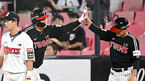 [OSEN=수원, 이대선 기자] 5일 오후 수원 KT위즈파크에서 2023 신한은행 SOL KBO리그 KT 위즈와 LG 트윈스의 경기가 열렸다.6회초 1사 3루에서 LG 김현수가 우전 적시타를 치고 이종범 코치와 하이파이브를 하고 있다. 2023.09.05 /sunday@osen.c