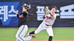 [OSEN=수원, 박준형 기자] 6일 오후 수원KT위즈파크에서 2023 신한은행 SOL KBO리그 KT 위즈와 LG 트윈스의 경기가 진행됐다.1회초 무사 1루 LG 신민재의 내야땅볼때 이호연 2루수가 1루 주자 홍창기의 태그를 놓쳤다. 벤자민이 이호연을