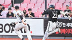 [OSEN=수원, 박준형 기자] 6일 오후 수원KT위즈파크에서 2023 신한은행 SOL KBO리그 KT 위즈와 LG 트윈스의 경기가 진행됐다.1회초 무사 1루 LG 신민재의 내야땅볼때 1루 주자 홍창기가 이호연 2루수의 태그를 피하며 2루로 질주하고 있