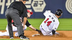 [OSEN=잠실, 박준형 기자] 7일 오후 서울 잠실야구장에서 ‘2023 신한은행 SOL KBO리그’ 두산 베어스와 KIA 타이거즈의 경기가 진행됐다.6회말 2사 1루 두산 조수행의 타석때 1루 주자 박계범이 도루 실패하고 있다. 2023.09.07 / soul1014@os