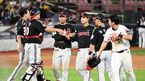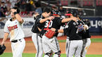 [OSEN=수원, 이대선 기자] LG는 7일 수원KT위즈파크에서 열린 KT와 경기에서 장단 14안타를 터뜨리며 11-4로 승리했다. 1위 LG는 전날 9회말 악몽의 역전패를 설욕하고 2위 KT와 격차를 6.5경기 차이로 벌렸다.경기 종료 후 LG 선수단이 K