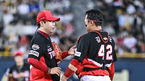 [OSEN=수원, 이대선 기자] 7일 오후 수원 KT위즈파크에서 2023 신한은행 SOL KBO리그 KT 위즈와 LG 트윈스의 경기가 열렸다.4회초 1사 2루에서 LG 오지환의 좌전 적시타 때 홈을 밟은 2루주자 문보경이 더그아웃에서 염경엽 감독의 축하