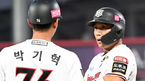 [OSEN=수원, 이대선 기자] 7일 오후 수원 KT위즈파크에서 2023 신한은행 SOL KBO리그 KT 위즈와 LG 트윈스의 경기가 열렸다.2회말 1사 1,3루에서 KT 박경수가 적시타를 치고 박기혁 코치와 이야기를 나누고 있다. 2023.09.07 /sunday@osen.co.kr