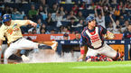 [OSEN=창원, 이석우 기자] 9일 창원 NC파크에서 2023 신한은행 SOL KBO리그 NC 다이노스와 롯데 자이언츠의 더블헤더 2차전 경기가 열렸다. NC 다이노스 오영수가 6회말 1사 1,3루 최정원의 2루 땅볼 때 득점을 올리고 있다. 2023.09.09 / foto03