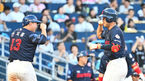 [OSEN=창원, 이석우 기자] 9일 창원 NC파크에서 2023 신한은행 SOL KBO리그 NC 다이노스와 롯데 자이언츠의 더블헤더 2차전 경기가 열렸다. 롯데 자이언츠 유강남이 1회초 2사 1루 좌월 전준우의 2점 홈런을 축하하고 있다. 2023.09.09 / foto0