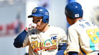 [OSEN=고척, 박준형 기자] 9일 오후 서울 고척스카이돔에서 ‘2023 신한은행 SOL KBO리그’ 키움 히어로즈와 한화 이글스의 더블헤더 1차전이 열렸다.2회초 1사 만루 한화 문현빈이 2타점 적시타를 날린뒤 전상렬 1루 코치와 하이파이
