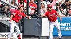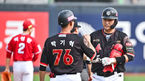 [OSEN=수원, 박준형 기자] 10일 오후 경기도 수원시 수원KT위즈파크에서 2023 신한은행 SOL KBO리그 KT 위즈와 SSG 랜더스의 경기가 진행됐다.KT 장성우가 4회말 2사 1,2루 동점 2타점 적시타를 날리고 박기혁 코치와 하이파이브를 하고 있