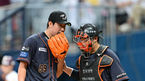 [OSEN=고척, 최규한 기자] 10일 오후 서울 고척스카이돔에서 ‘2023 신한은행 SOL KBO리그’ 키움 히어로즈와 한화 이글스의 경기가 열렸다.3회말 2사 만루 상황 한화 선발 한승주와 포수 최재훈이 마운드에서 대화를 나누고 있다. 202