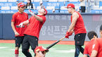 [OSEN=수원, 박준형 기자] 10일 오후 경기도 수원시 수원KT위즈파크에서 2023 신한은행 SOL KBO리그 KT 위즈와 SSG 랜더스의 경기가 진행된다.경기 앞서 SSG 추신수가 하재훈의 엉덩이를 때리며 장난치고 있다. 2023.09.10 / soul1014@osen.co.kr