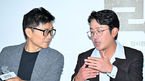 [OSEN=민경훈 기자] 11일 오후 서울 광진구 자양동 롯데시네마 건대입구에서 영화 '1947 보스톤' 언론배급시사회 및 기자간담회가 열렸다.배우 하정우가 강제규 감독과 얘기를 나누고 있다. 2023.09.11 /rumi@osen.co.kr