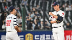 [OSEN=부산, 이석우 기자] 12일 부산 사직구장에서 2023 신한은행 SOL KBO리그 롯데 자이언츠와 NC 다이노스의 경기가 열렸다. 롯데 자이언츠 김진욱이 7회초 2사 1,2루 실점위기에 투수 교체를 위해 김현욱 코치가 마운드에 오르자 아