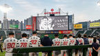 [OSEN=부산, 이석우 기자] 12일 부산 사직구장에서 2023 신한은행 SOL KBO리그 롯데 자이언츠와 NC 다이노스의 경기가 열렸다. 롯데 자이언츠 선수들이 故 최동원 감독 12주기 추모 묵념을 하고 있다. 2023.09.12 / foto0307@osen.co.kr