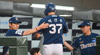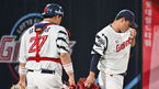 [OSEN=부산, 이석우 기자] 12일 부산 사직구장에서 2023 신한은행 SOL KBO리그 롯데 자이언츠와 NC 다이노스의 경기가 열렸다. 롯데 자이언츠 나균안과 유강남이 2회초 1사 1,3루 NC 다이노스 김주원의 희생 플라이 때 실점을 하고 아쉬
