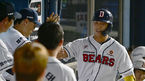 [OSEN=김성락 기자] 12일 오후 서울 잠실야구장에서 ‘2023 신한은행 SOL KBO리그’ 두산 베어스와 한화 이글스의 경기가 진행됐다.2회말 두산 선두타자 박준영이 솔로 홈런을 날린 뒤 더그아웃에서 이승엽 감독과 기쁨을 나누고 있