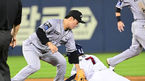 [OSEN=부산, 이석우 기자] 12일 부산 사직구장에서 2023 신한은행 SOL KBO리그 롯데 자이언츠와 NC 다이노스의 경기가 열렸다. NC 다이노스 김형준이 7회말 무사 만루 롯데 자이언츠 황성빈을 투수 앞 땅볼로 병살 처리하고 주먹을 불