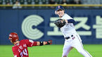 [OSEN=잠실, 김성락 기자] 14일 오후 서울 잠실야구장에서 ‘2023 신한은행 SOL KBO리그’ 두산 베어스와 SSG 랜더스의 경기가 진행됐다.5회초 무사 1루 SSG 추신수의 병살타 때 두산 최스용이 호수비를 펼친 2루수 박계범에게 박수를 보