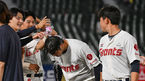 [OSEN=부산, 이석우 기자] 15일 부산 사직구장에서 2023 신한은행 SOL KBO리그 롯데 자이언츠와 키움 히어로즈의 경기가 열렸다. 롯데 자이언츠 진승현이 연장 10회말 끝내기 승리의 승리 투수가 되고 축하를 받고 있다. 2023.09.15 / foto03