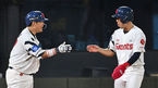 [OSEN=부산, 이석우 기자] 15일 부산 사직구장에서 2023 신한은행 SOL KBO리그 롯데 자이언츠와 키움 히어로즈의 경기가 열렸다. 롯데 자이언츠 정훈이 6회말 1사 2,3루 윤동희의 역전 2타점 적시타 때 득점을 올리고 하이파이브를 하