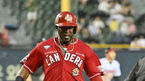 [OSEN=잠실, 민경훈 기자] 16일 오후 서울 잠실야구장에서 ‘2023 신한은행 SOL KBO리그’ LG 트윈스와 SSG 랜더스의 경기가 열렸다.6회초 1사 주자 1,2루 SSG 박성한의 우익수 앞 역전 1타점 적시타때 홈을 밟은 에레디아가 덕아웃에서 김