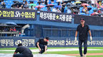 [OSEN=잠실, 김성락 기자] 17일 오후 서울 잠실야구장에서 ‘2023 신한은행 SOL KBO리그’ LG 트윈스와 SSG 랜더스의 DH 1차전 경기가 열렸다. 6회말 갑작스러운 강우로 방수포 덮히는 마운드. 2023.09.17 /ksl0919@osen.co.kr