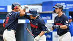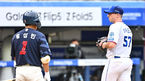 [OSEN=잠실, 김성락 기자] 17일 오후 서울 잠실야구장에서 ‘2023 신한은행 SOL KBO리그’ LG 트윈스와 SSG 랜더스의 DH 1차전 경기가 열렸다. 4회말 1사 LG 오스틴이 동점 솔로 홈런을 날린 뒤 더그아웃에서 염경엽 감독과 하이파이브를
