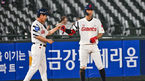 [OSEN=부산, 이석우 기자] 19일 부산 사직구장에서 2023 신한은행 SOL KBO리그 롯데 자이언츠와 키움 히어로즈의 경기가 열렸다. 롯데 자이언츠 노진혁이 4회말 2사 1,3루 역전 2타점 우중간 3루타를 치고 하이파이브를 하고 있다. 2023.09