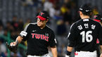 [OSEN=문학, 조은정 기자]21일 오후 인천 문학동 SSG랜더스필드에서 2023 신한은행 SOL KBO리그 SSG 랜더스와 LG 트윈스의 경기가 진행됐다.7회초 LG 김진성이 SSG 선두타자 한유섬의 안타에 타구를 맞은 뒤 괜찮다는 사인을 보내고 있다.