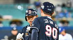 [OSEN=대구, 이석우 기자] 21일 대구 삼성라이온즈파크에서 2023 신한은행 SOL KBO리그 삼성 라이온즈와 두산 베어스의 경기가 열렸다. 두산 베어스 조수행이 5회초 무사 3루 정수빈의 적시타 때 득점을 올리고 하이파이브를 하고 있