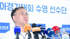 [OSEN=인천국제공항, 김성락 기자] 21일 오전 수영국가대표 선수단이 2022 항저우 아시안게임 참석을 위해 인천국제공항을 통해 중국 항저우로 출국했다.수영대표팀 이정훈 감독이 취재진의 질문에 대답하고 있다. 2023.09.21 / ksl0919@