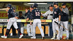 [OSEN=잠실, 지형준 기자] 22일 오후 서울 잠실야구장에서 ‘2023 신한은행 SOL KBO리그’ LG 트윈스와 NC 다이노스의 경기가 열렸다.2회초 2사 만루에서 NC 김주원이 서호철의 역전 2타점 적시타에 홈을 밟고 강인권 감독, 전형도 코치