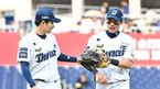 [OSEN=창원, 이석우 기자] 23일 창원 NC파크에서 2023 신한은행 SOL KBO리그 NC 다이노스와 두산 베어스의 경기가 열렸다. NC 다이노스 도태훈이 2회초 2사 1,2루 두산 베어스 허경민의 직선타를 잡아 아웃시키고 이재학의 감사 인사를