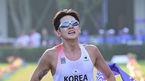 [OSEN=항저우(중국), 김성락 기자] 24일 오후 중국 푸양 인후 스포츠센터에서 '제19회 항저우아시안게임' 근대5종 남자 결승전 경기가 열렸다.한국 대표팀 전웅태가 1위로 결승선을 통과하고 있다. 2023.09.24 / ksl0919@osen.co.kr