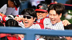 [OSEN=잠실, 지형준 기자] 24일 오후 서울 잠실야구장에서 ‘2023 신한은행 SOL KBO리그’ LG 트윈스와 한화 이글스의 경기가 열렸다.6회말 2사에서 LG 김현수가 우월 솔로포를 날리고 동료선수들과 기뻐하고 있다. 2023.09.24 /jpnews@osen.co
